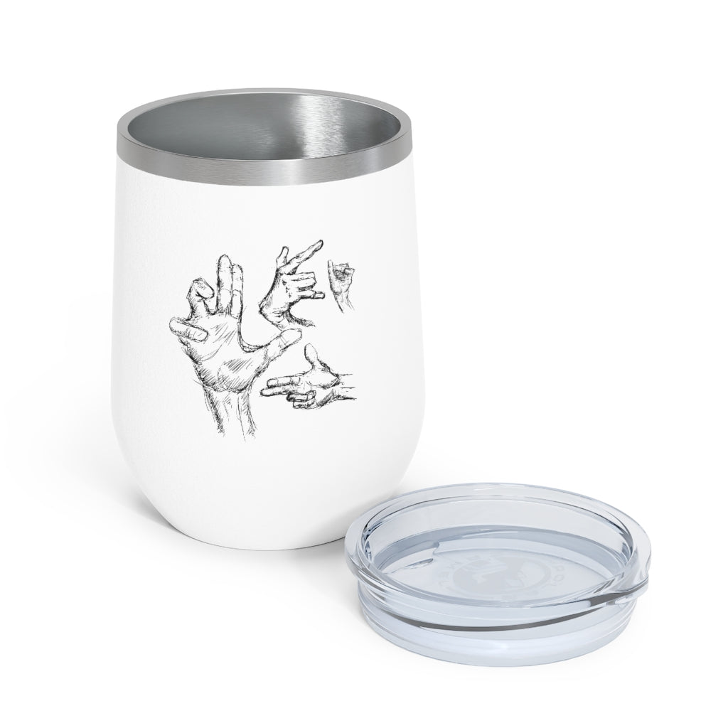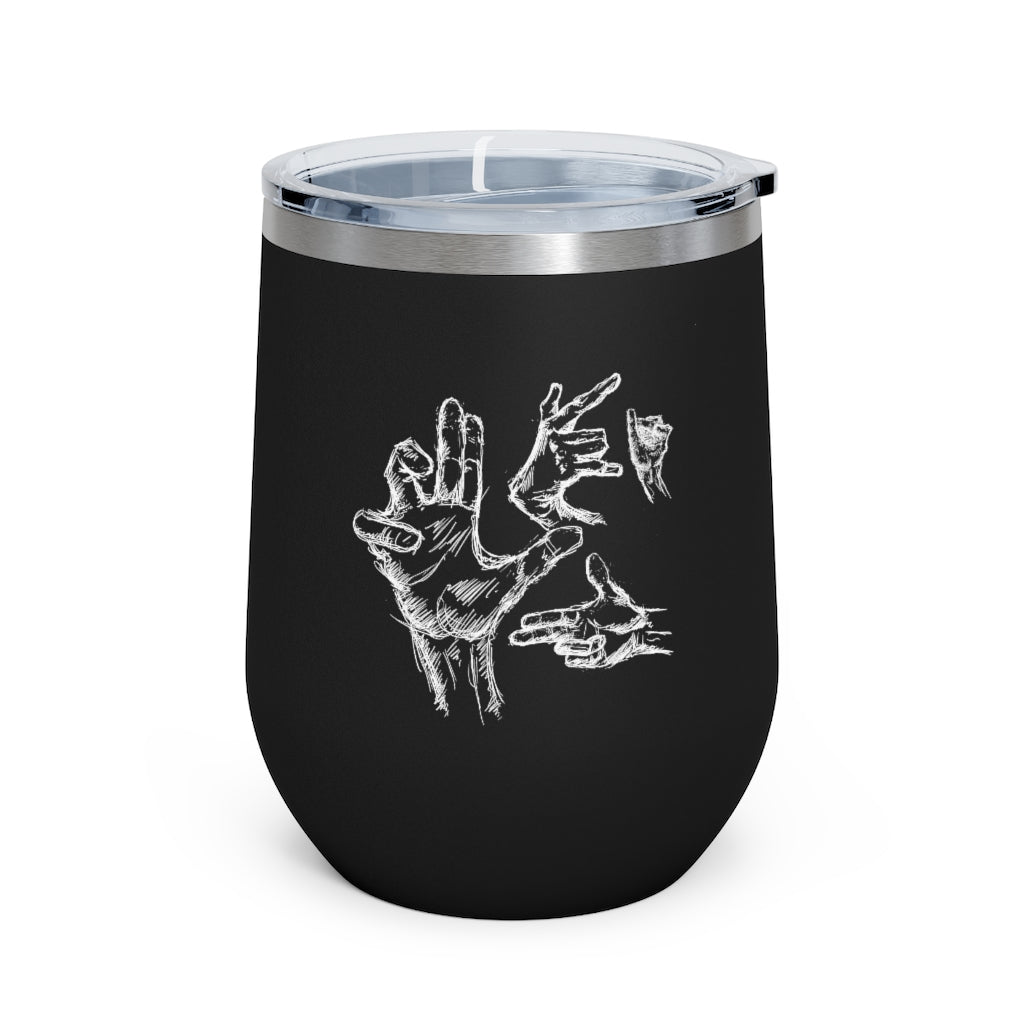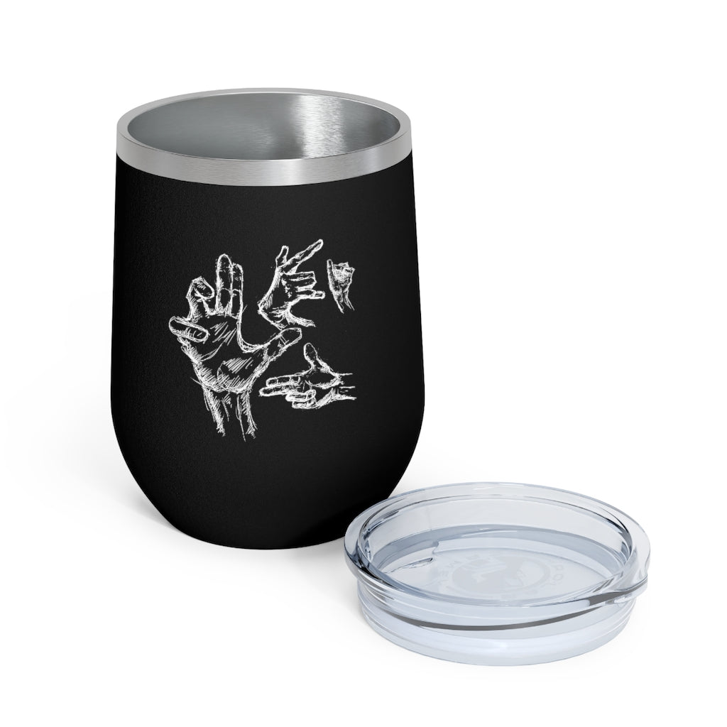 Hands can express a lot of feelings, thoughts and more. Take your hands (other then your own) with you with these (hand drawn) hands! For those needing a bit of personality to go. This wine tumbler is double insulated and features a see-through plastic lid with a hole for easy sipping. Capable of holding up to 12 oz. This wine tumblers are ideal for both hot and cold beverages.