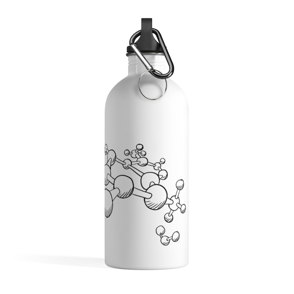 Molecules are all around us and inside us now you get them also as a design on your belongings! Perfect size stainless steel water bottle has a plastic screw top to keep ones bag dry. For travels, dance classes, or on a desk next to ones laptop -Take it with you to your next adventure.