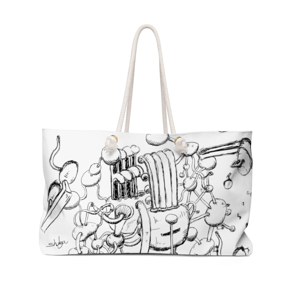 Music is a way of life, I made this design as part of exploring my own personal musical journey lately, and remind myself visually what music is. now sharing it with you on a selection of products like this one. Weekender Tote is perfect for your weekend at the beach or in town. The wide-mouthed, durable bag holds a generous amount of personal items and is easily held by its thick rope handles.
