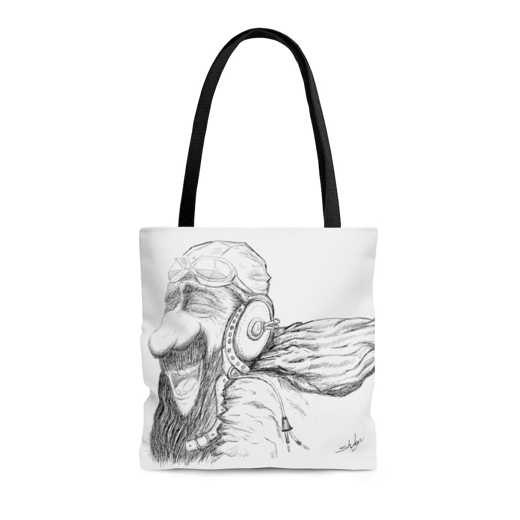 This old timer aviator will remind you to keep on smiling no matter what on vide selections on items around you. A Tote Bag is available in three sizes. All over print provides comfort with style at the beach or out in town. Made from reliable materials, lasting for seasons.