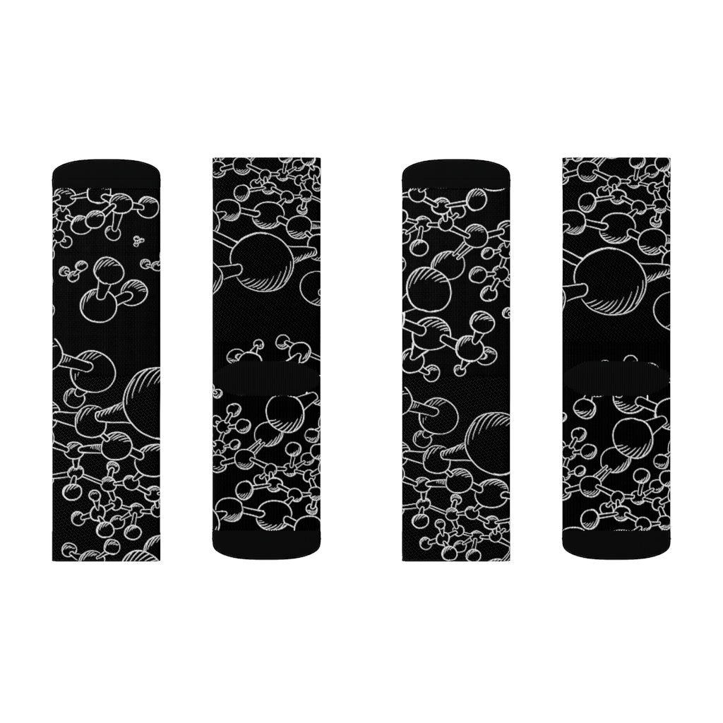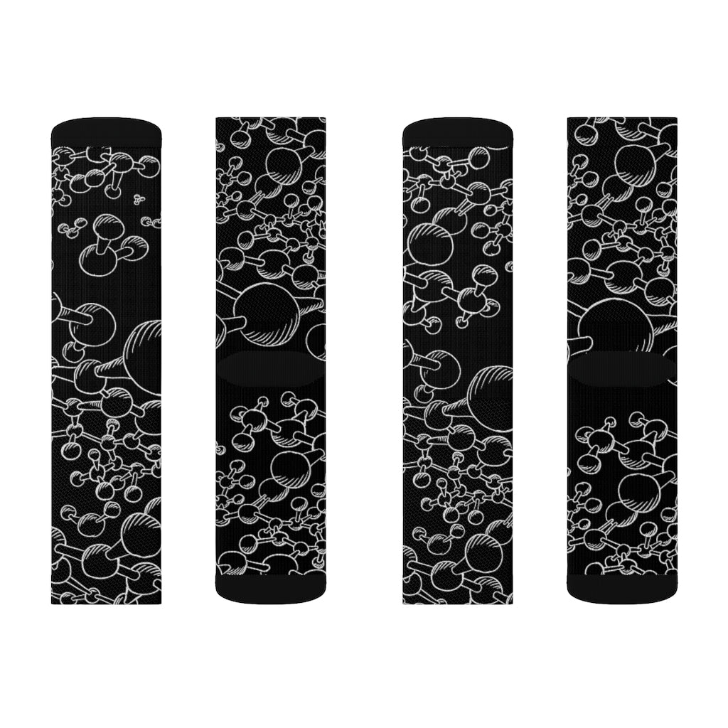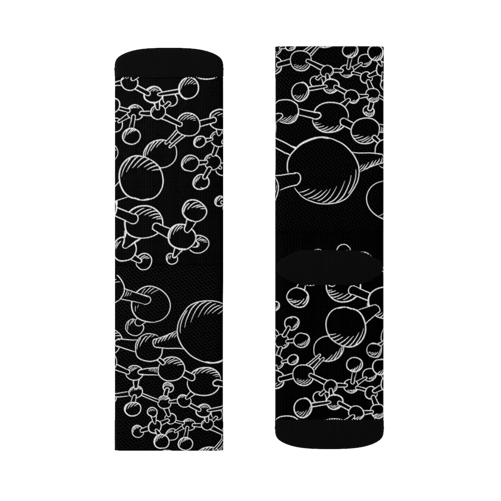 Molecules are all around us and inside us now you get them also as a design on your belongings! High-quality socks with unique print art work provide optimum comfort with style wherever one might go - a subtle accent to complement an office look or an eye-catching statement for an extravagant outfit.