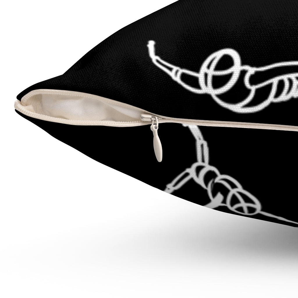Dancing figures design on a decoration pillow. Will fit your living room or even your office hang out.