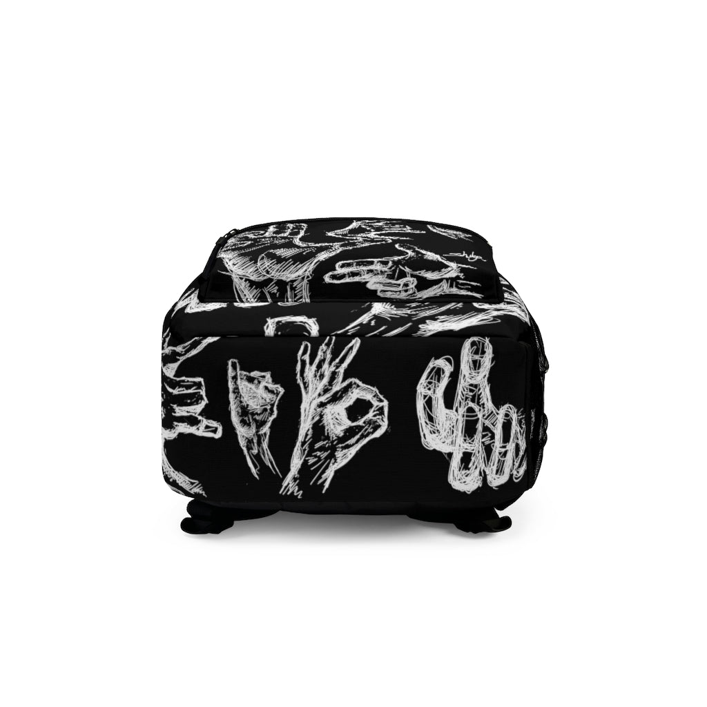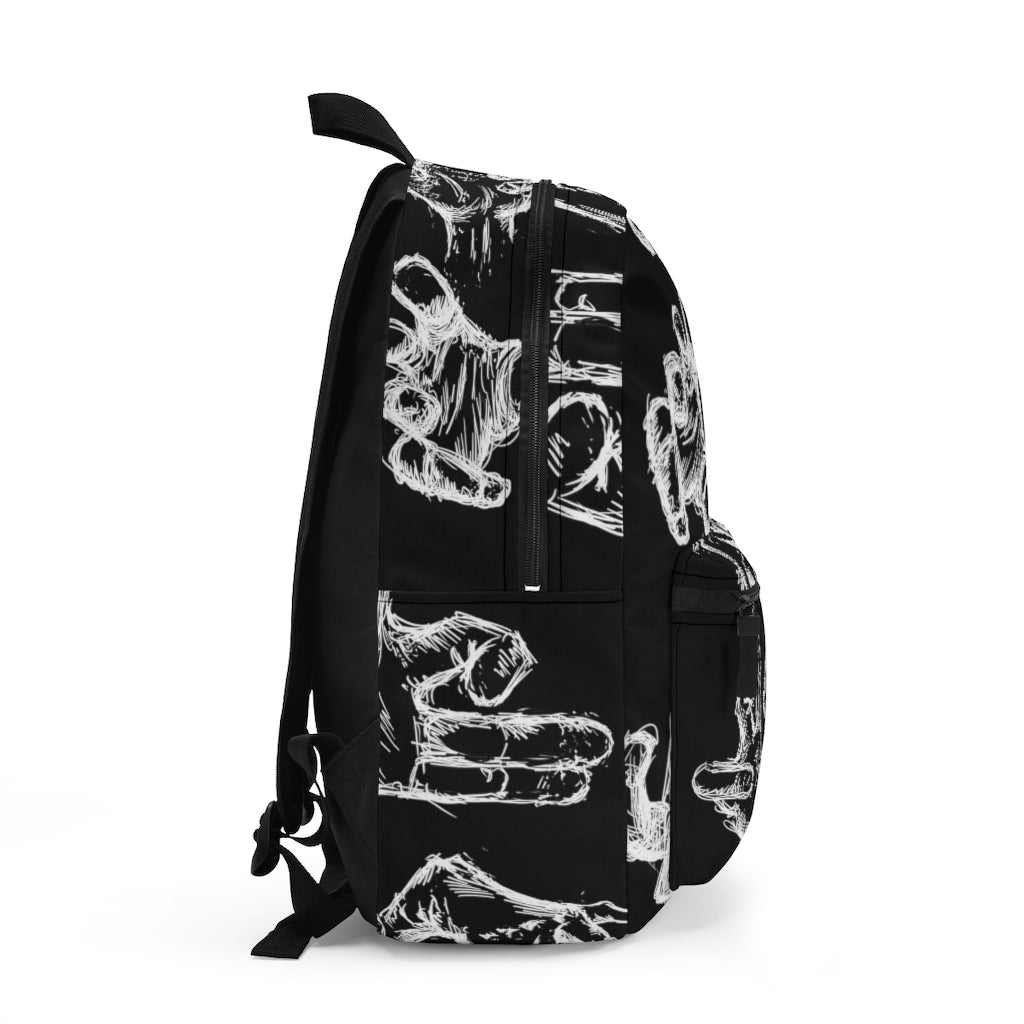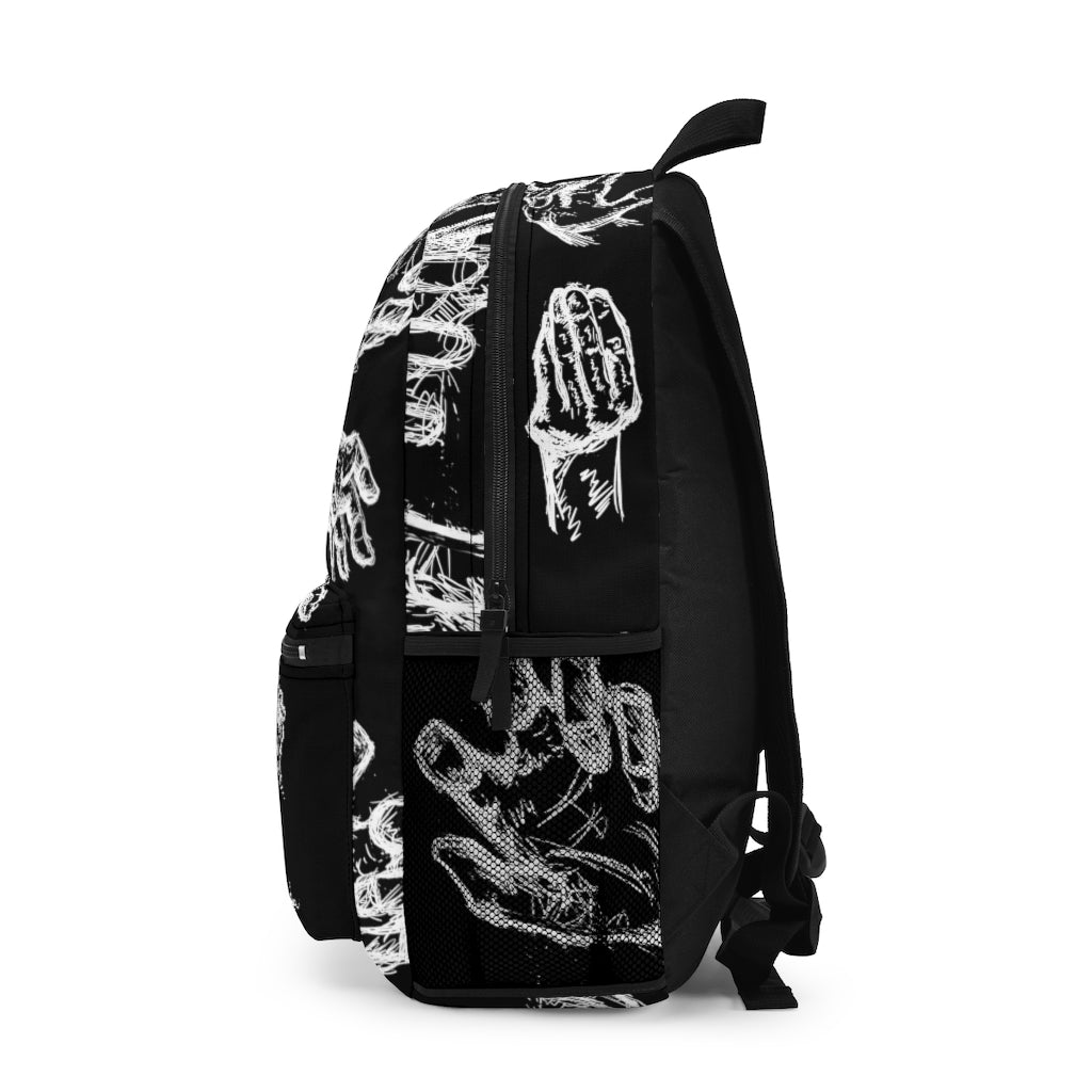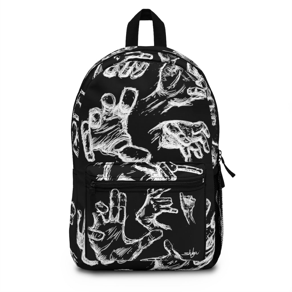 Hands can express a lot of feelings, thoughts and more. Take your hands (other then your own) with you with these (hand drawn) hands! This bag is made from spun polyester and weights 1.3 lbs, just enough to be light, strong and long-lasting. Grab it, stow it, throw it onto the seat next to you, this backpack can take it, and so will you, wherever you go!