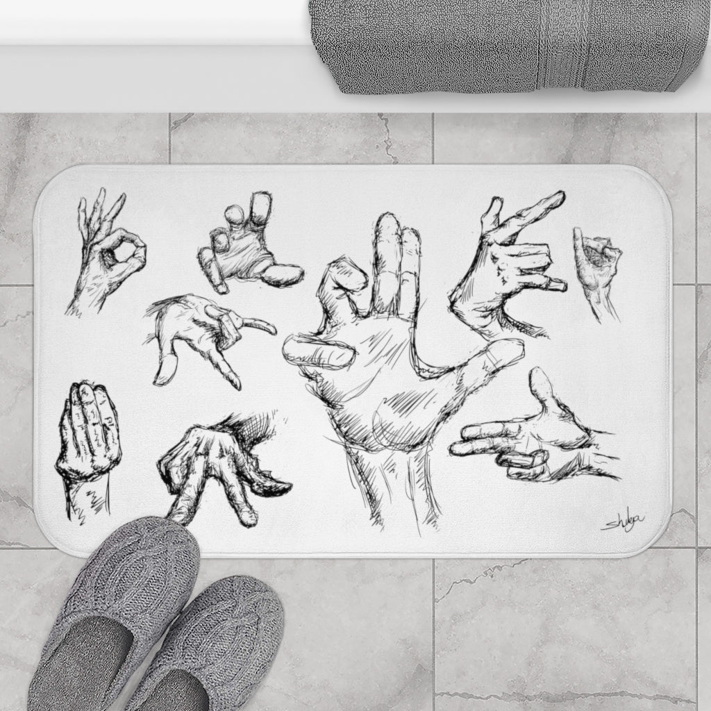 Hands can express a lot of feelings, thoughts and more. Take your hands (other then your own) with you with these (hand drawn) hands! This bath mat is as practical as it is stylish - the anti-slip backing keeps the bath mat firmly in place and reduces the risk of slipping.