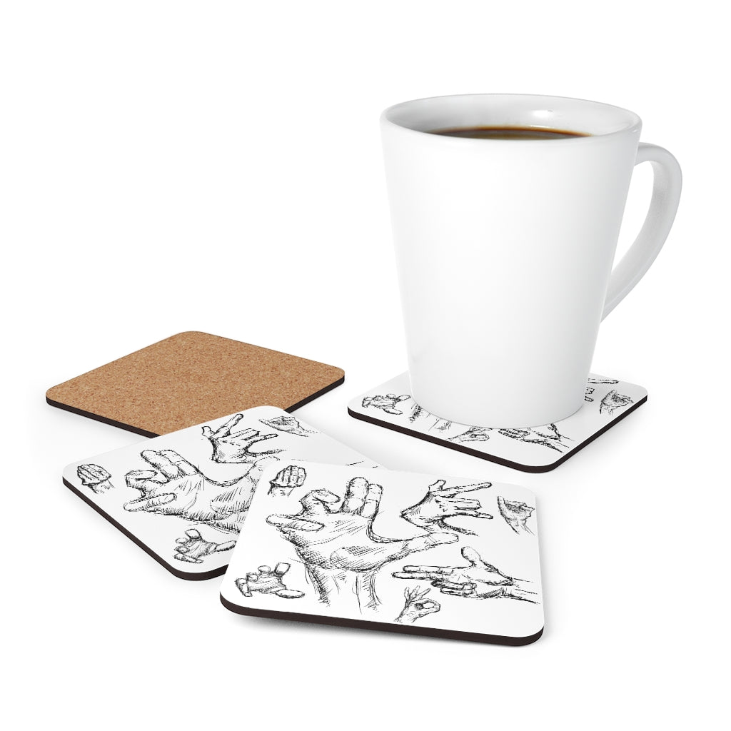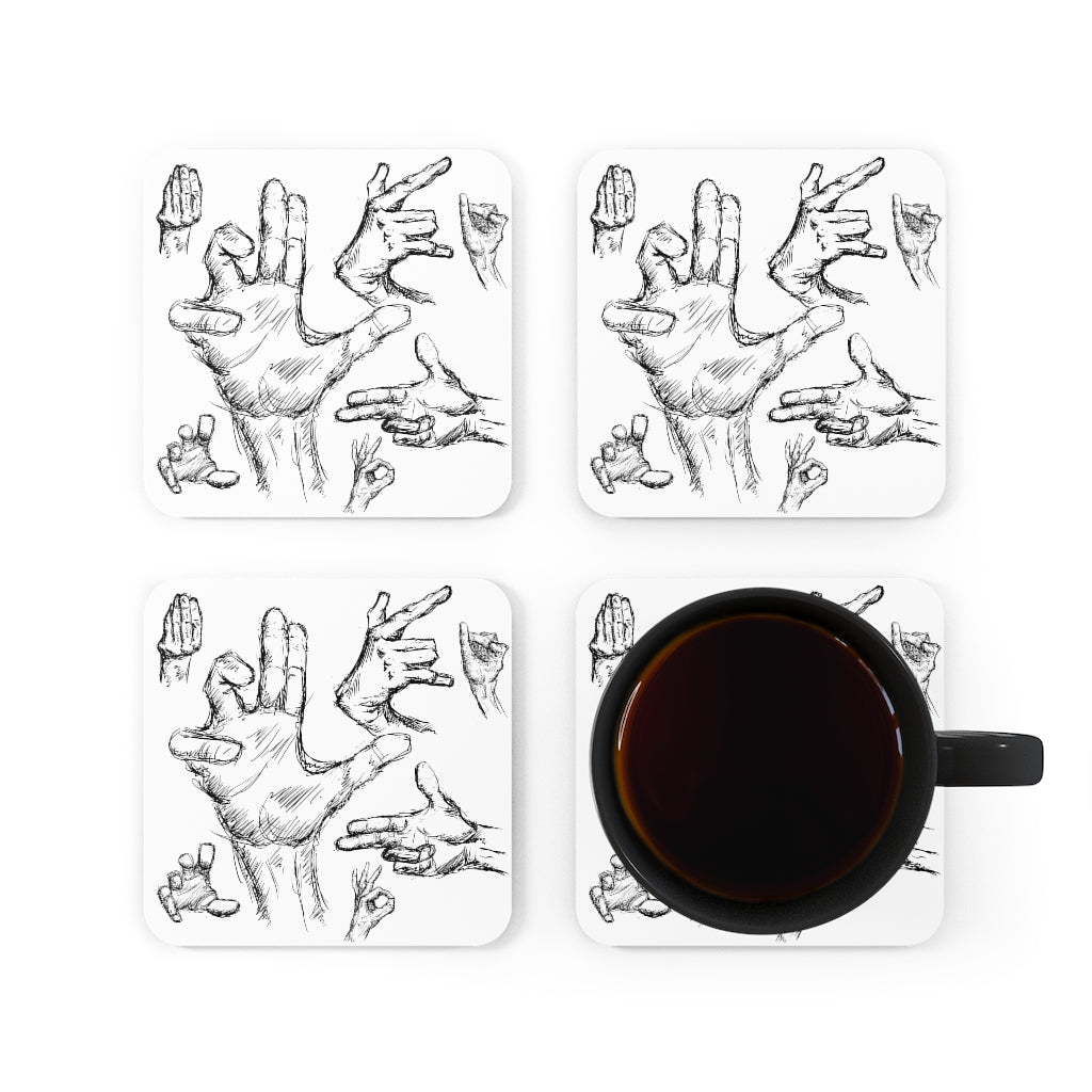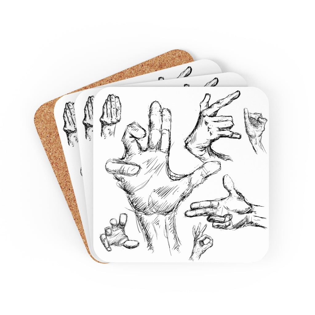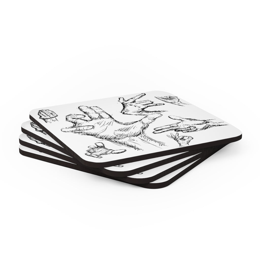 Hands can express a lot of feelings, thoughts and more. Take your hands (other then your own) with you with these (hand drawn) hands! Upgrading any home decor, or promoting a business – this personalized coaster set makes it all happen. With each order you get 4 coasters that come in one size, are made with a high-gloss top and feature a cork back to prevent sliding.