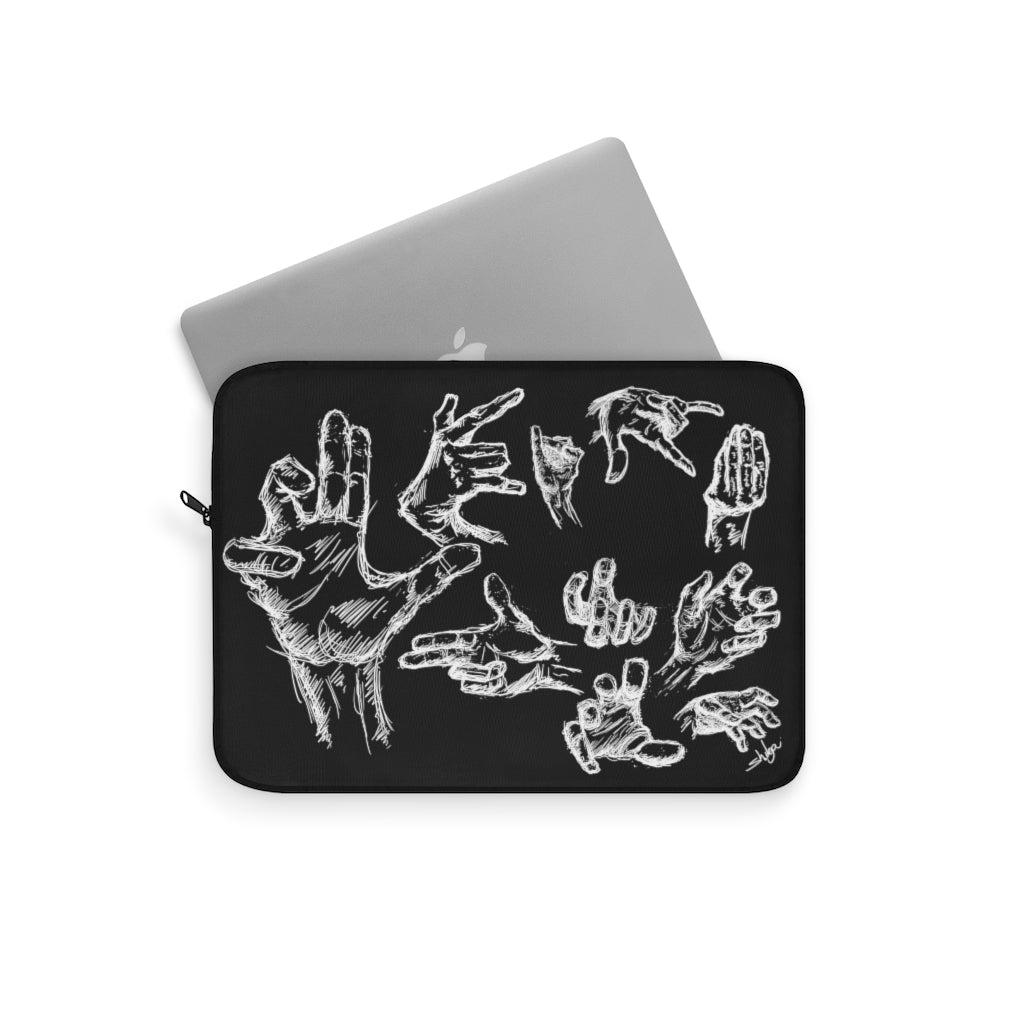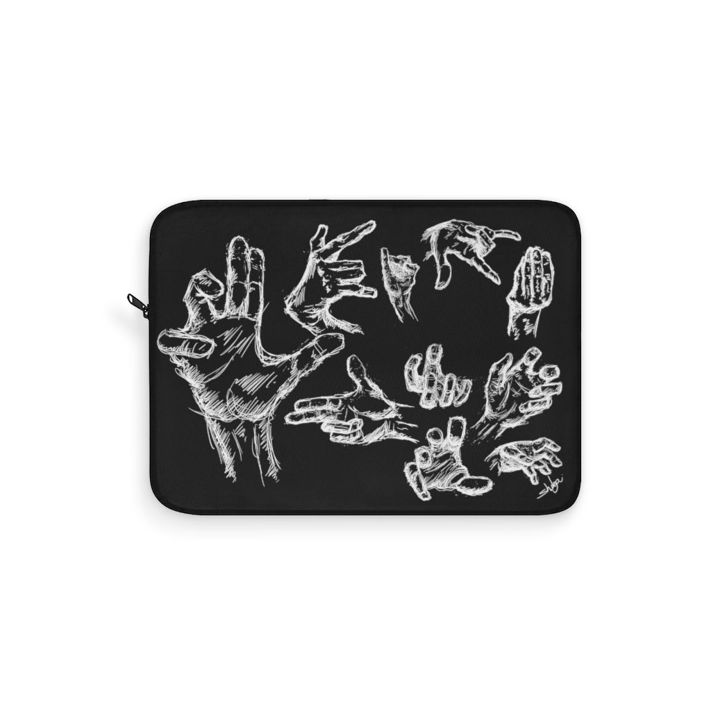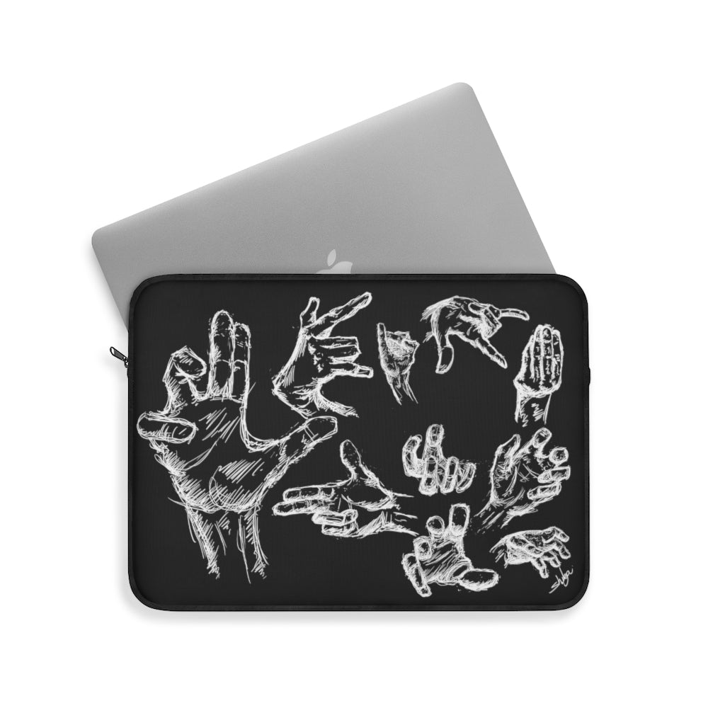 Hands can express a lot of feelings, thoughts and more. Take your hands (other then your own) with you with these (hand drawn) hands! Carry your laptop with style! High-quality sleeve available in three sizes to protect your laptop from scratches and minor impacts. Art work printed on one side with a black backside, edging, and zip, it's an elegant and stylish companion from day to day