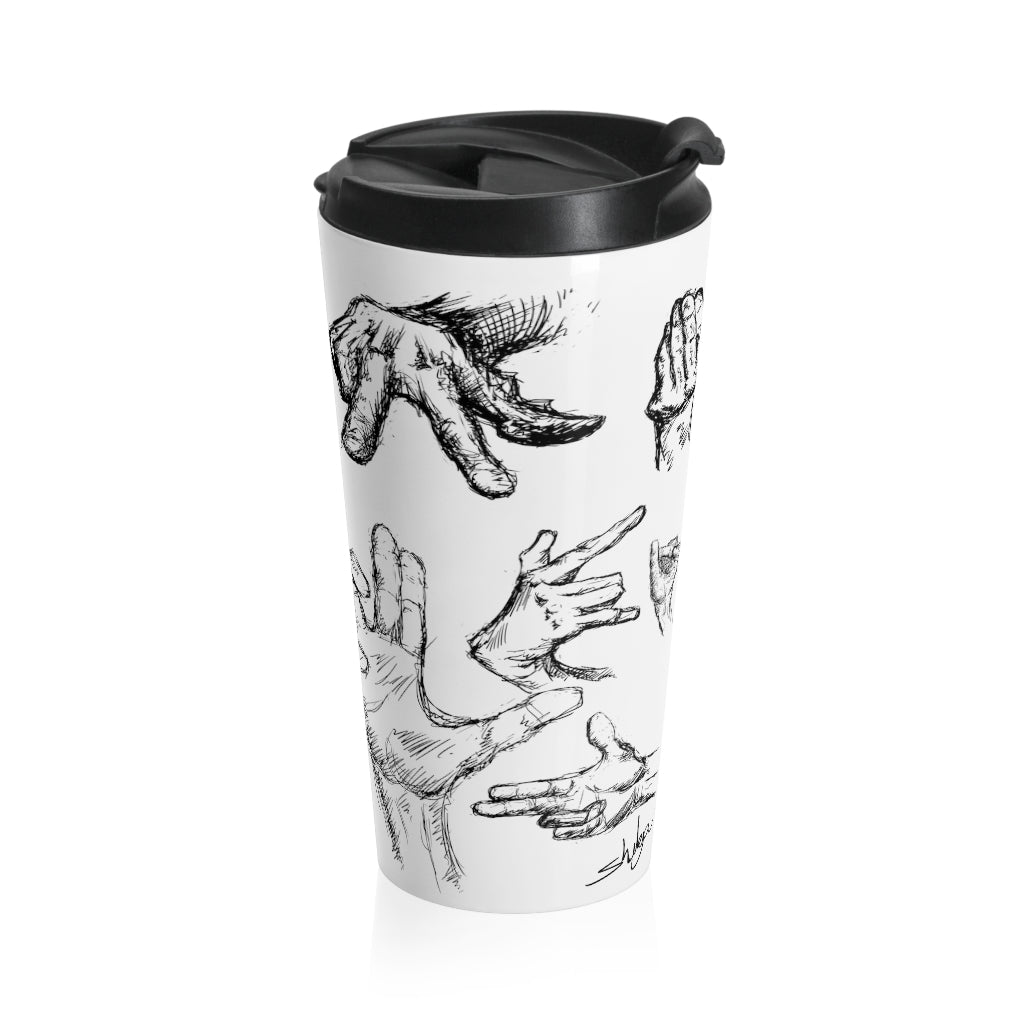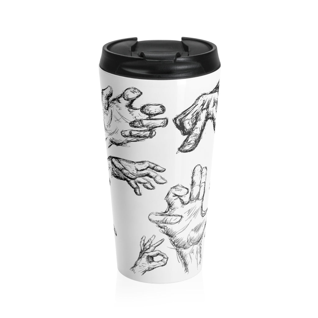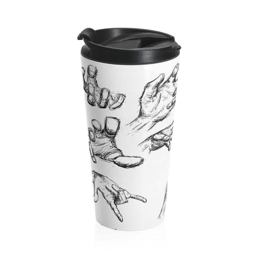 Hands can express a lot of feelings, thoughts and more. Take your hands (other then your own) with you with these (hand drawn) hands! Perfect for your a busy everyday life, this stainless steel mug will keep drinks at the right temperature for hours on the go. Art printed using high quality sublimation which makes it a perfect gift to every true coffee or tea lover, including you.