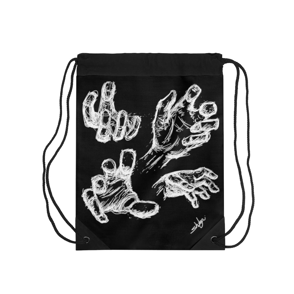 Hands can express a lot of feelings, thoughts and more. Take your hands (other then your own) with you with these (hand drawn) hands! Lightweight, durable and amazing-looking - all the best qualities in one package! Thinking of a quick trip to the gym, store or beach? Take this drawstring gym bag with you, it’s the perfect storage system for those quick hops and light travels when you don’t feel like carrying a lot of excess items.