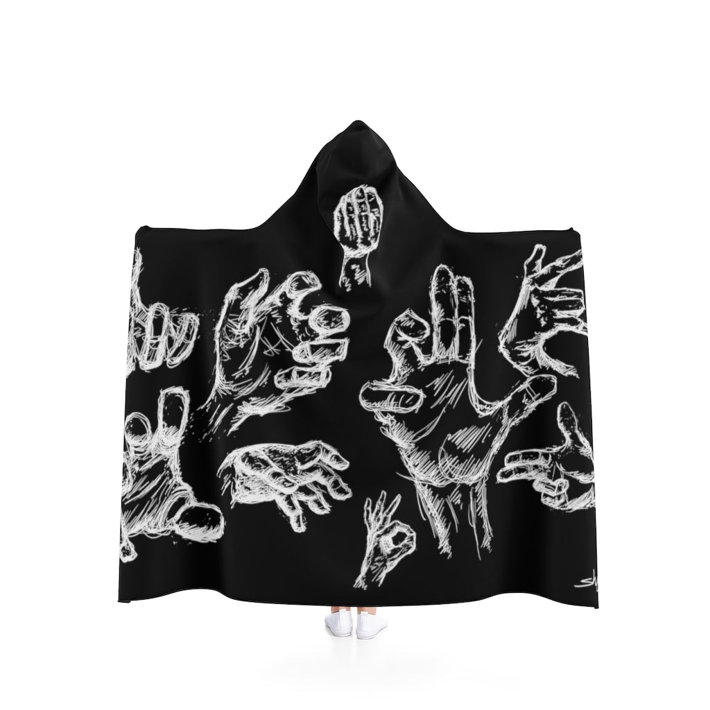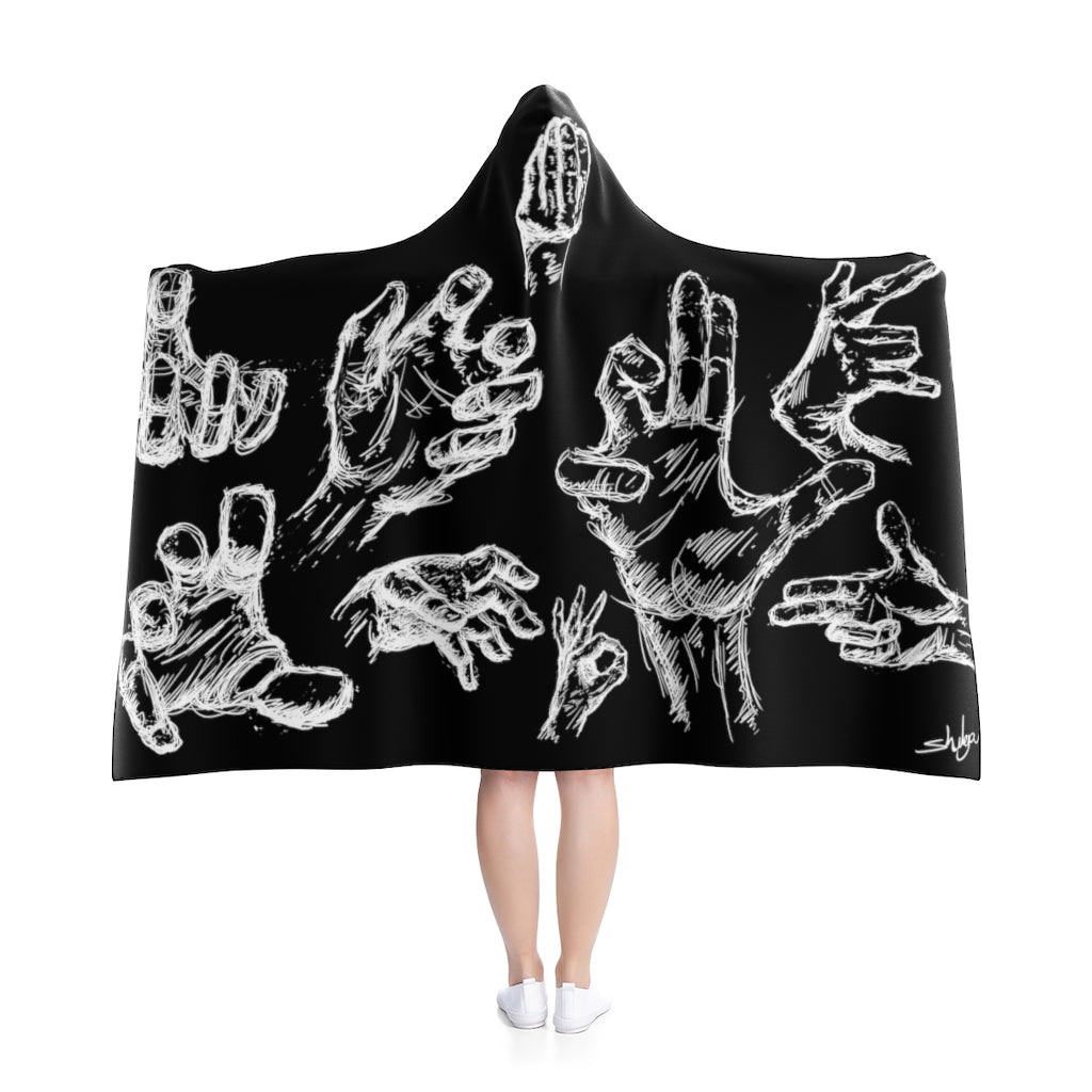 Hands can express a lot of feelings, thoughts and more. Take your hands (other then your own) with you with these (hand drawn) hands! Blanket, cape, or the perfect fashion statement? It's lightweight, durable and very easy to clean. Be the life of the party or campfire with this custom hooded fleece blanket!
