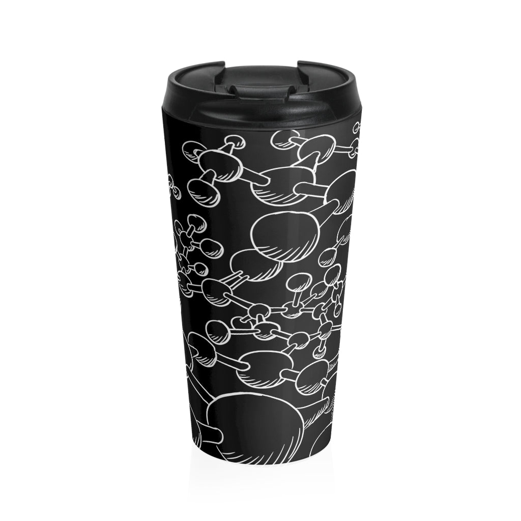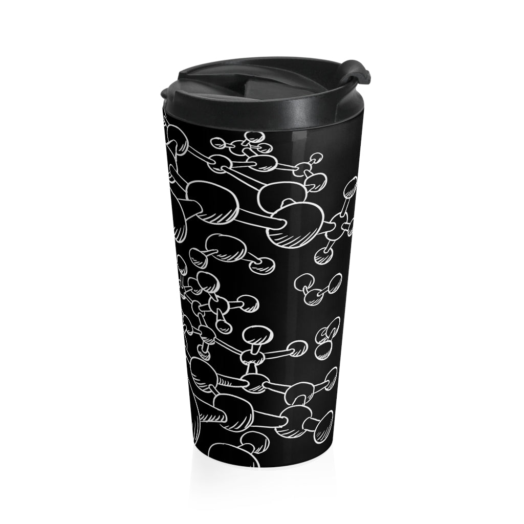 Molecules are all around us and inside us now you get them also as a design on your belongings! Perfect for your a busy everyday life, this stainless steel mug will keep drinks at the right temperature for hours on the go. Art printed using high quality sublimation which makes it a perfect gift to every true coffee or tea lover, including you.