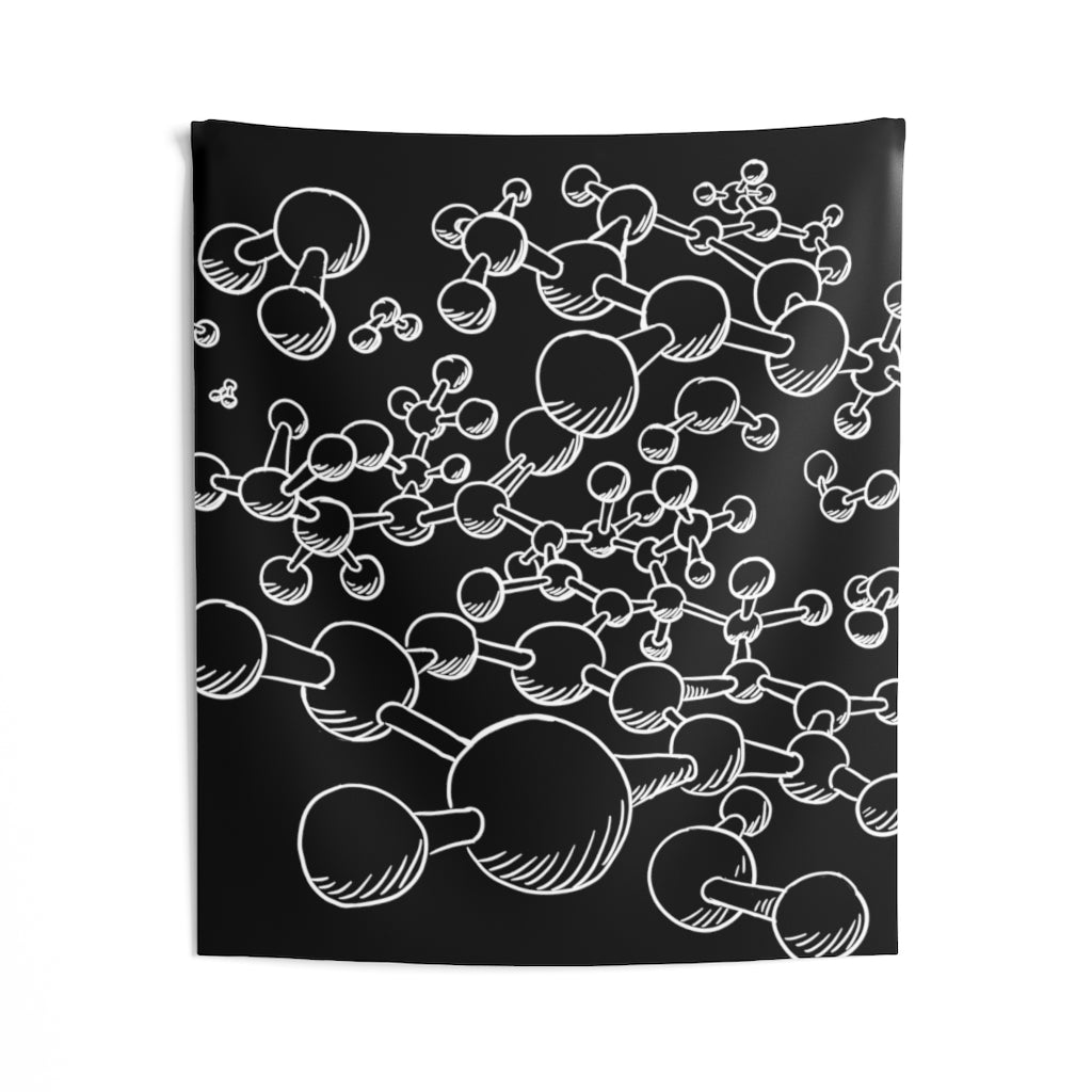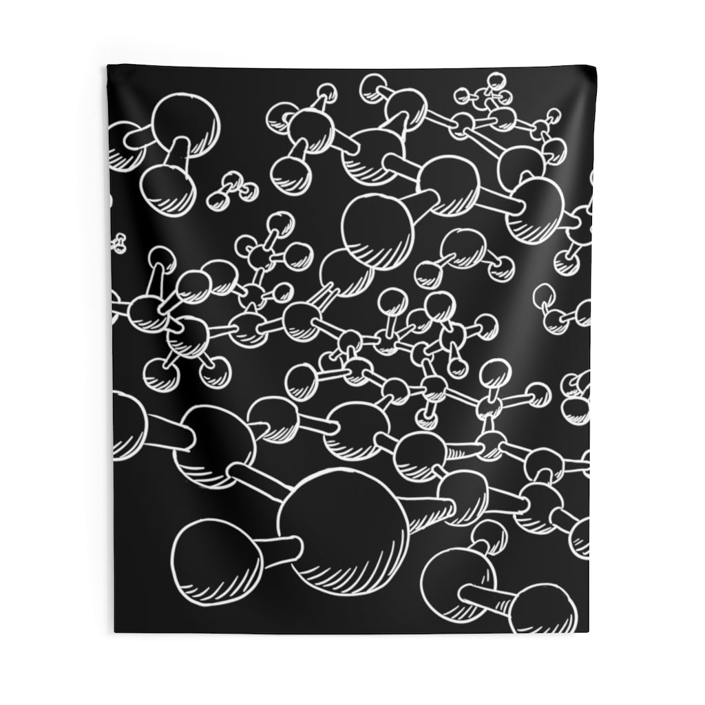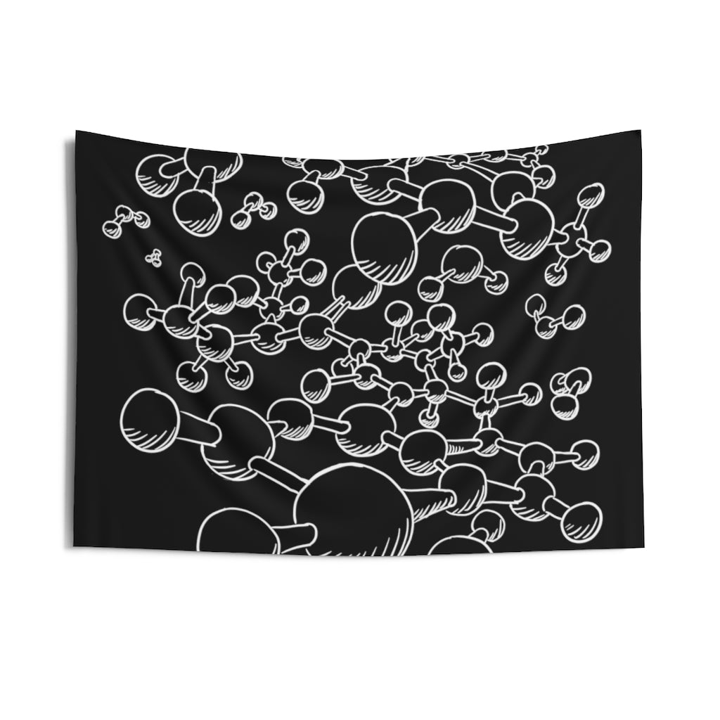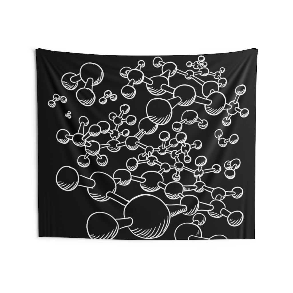 Molecules are all around us and inside us now you get them also as a design on your belongings! A custom wall tapestry is a surefire way to uplift any room’s aesthetics with a personal touch. This 100% Polyester wall tapestry comes with hemmed edges for extra durability while its mildew and water-resistant properties ensure years worth of decorating bliss. The advanced tapestry printing techniques guarantee crisp detail even for the craziest of designs, in any of our multiple size choices.