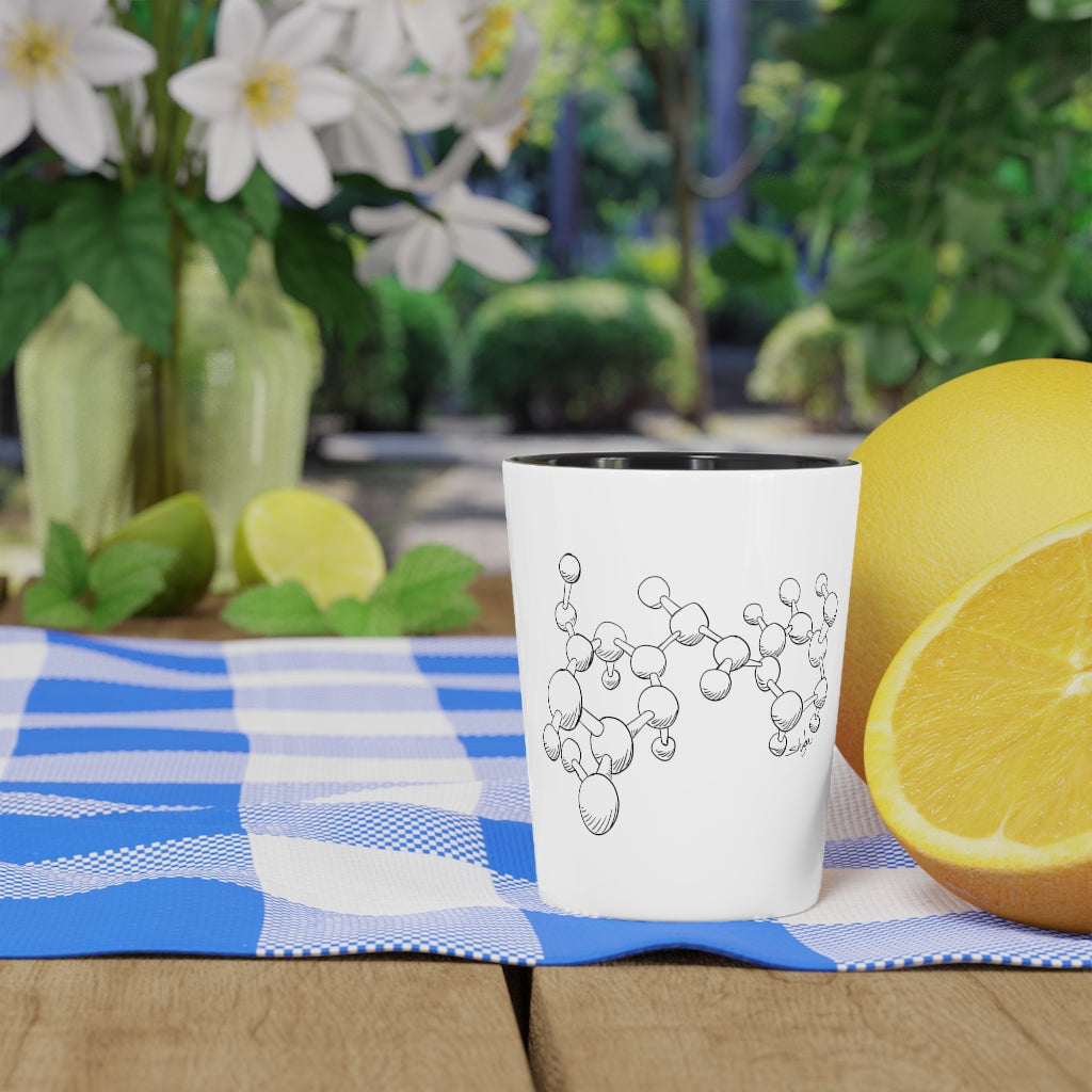Molecules are all around us and inside us now you get them also as a design on your belongings! Whatever you drink, these shots will only look better and better as you go