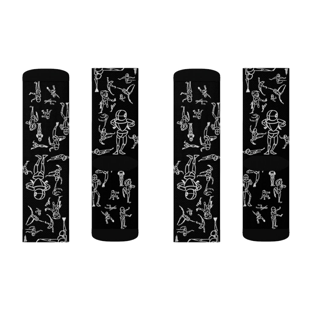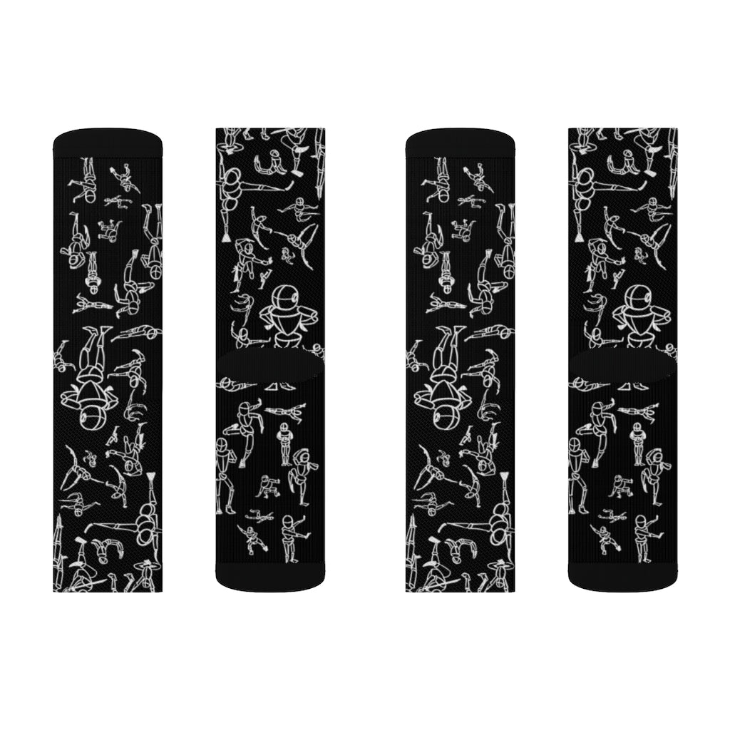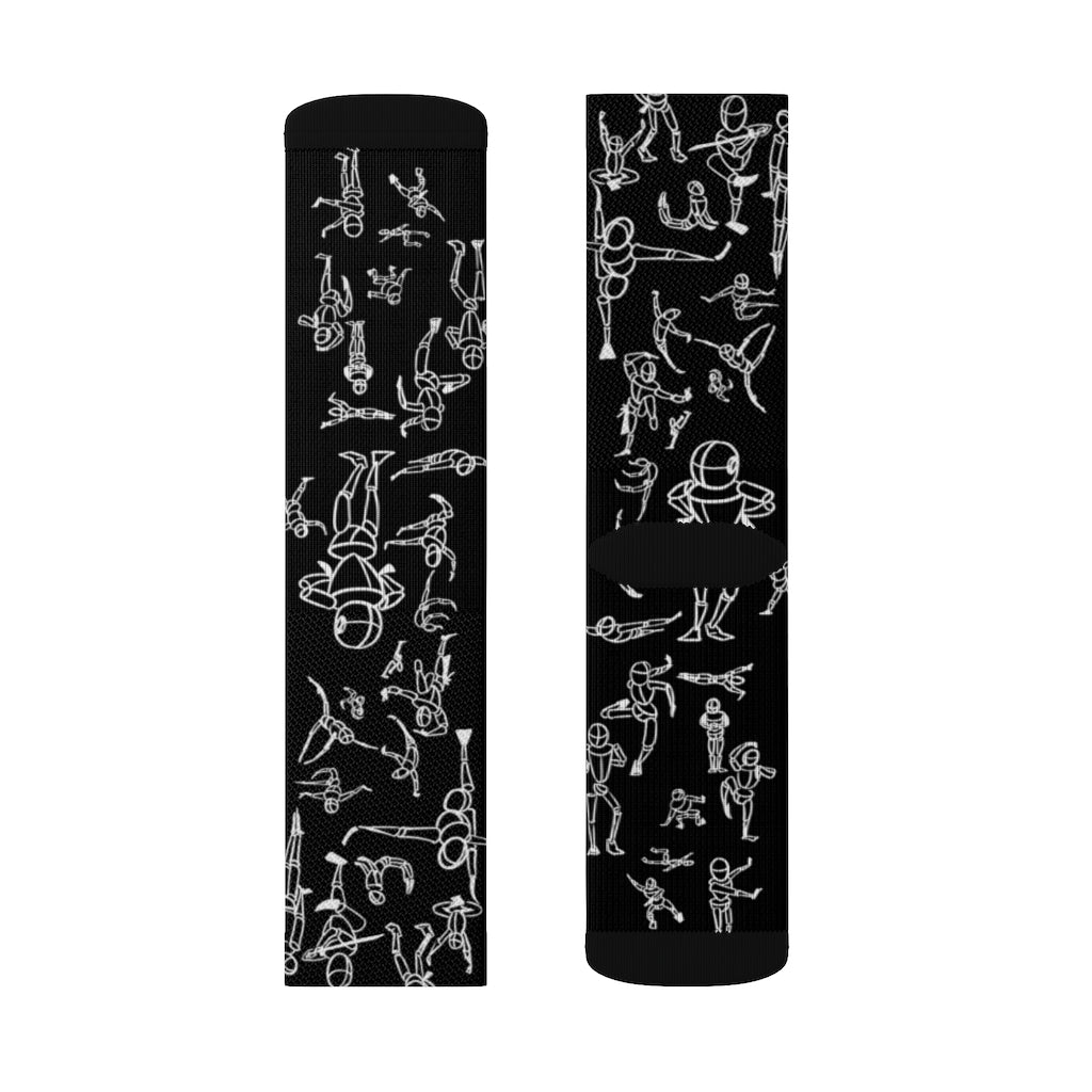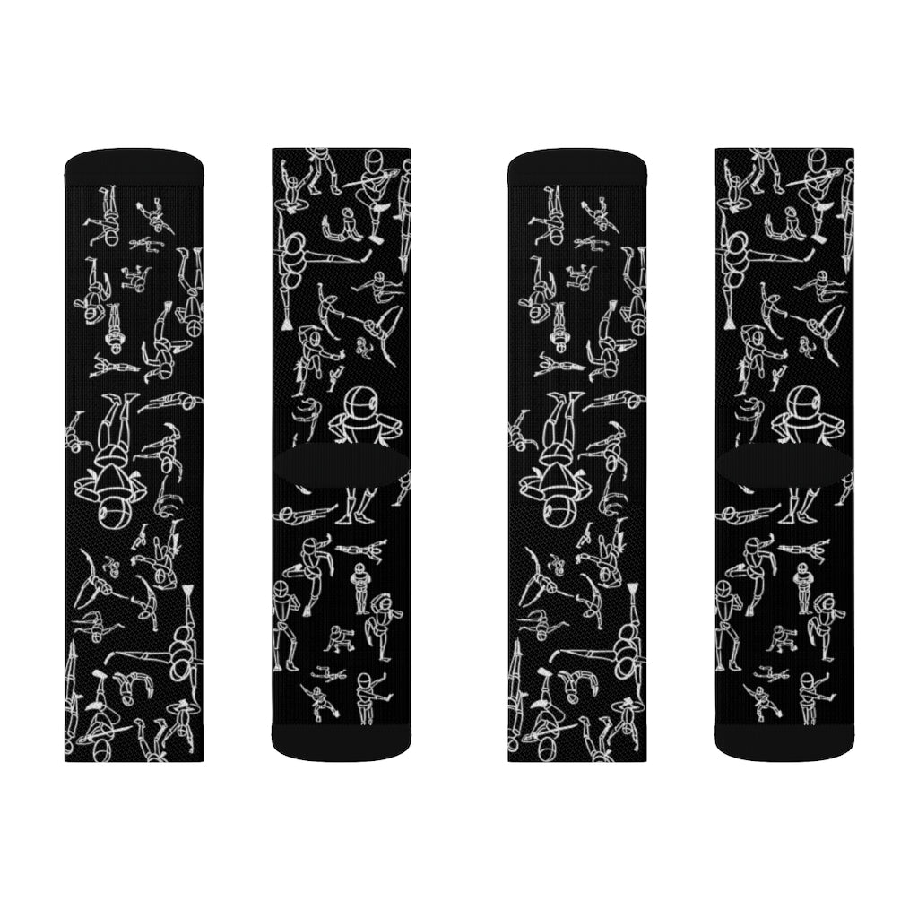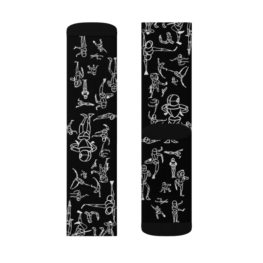 Put dancing figures on your socks! High-quality socks with unique print art work provide optimum comfort with style wherever one might go - a subtle accent to complement an office look or an eye-catching statement for an extravagant outfit.