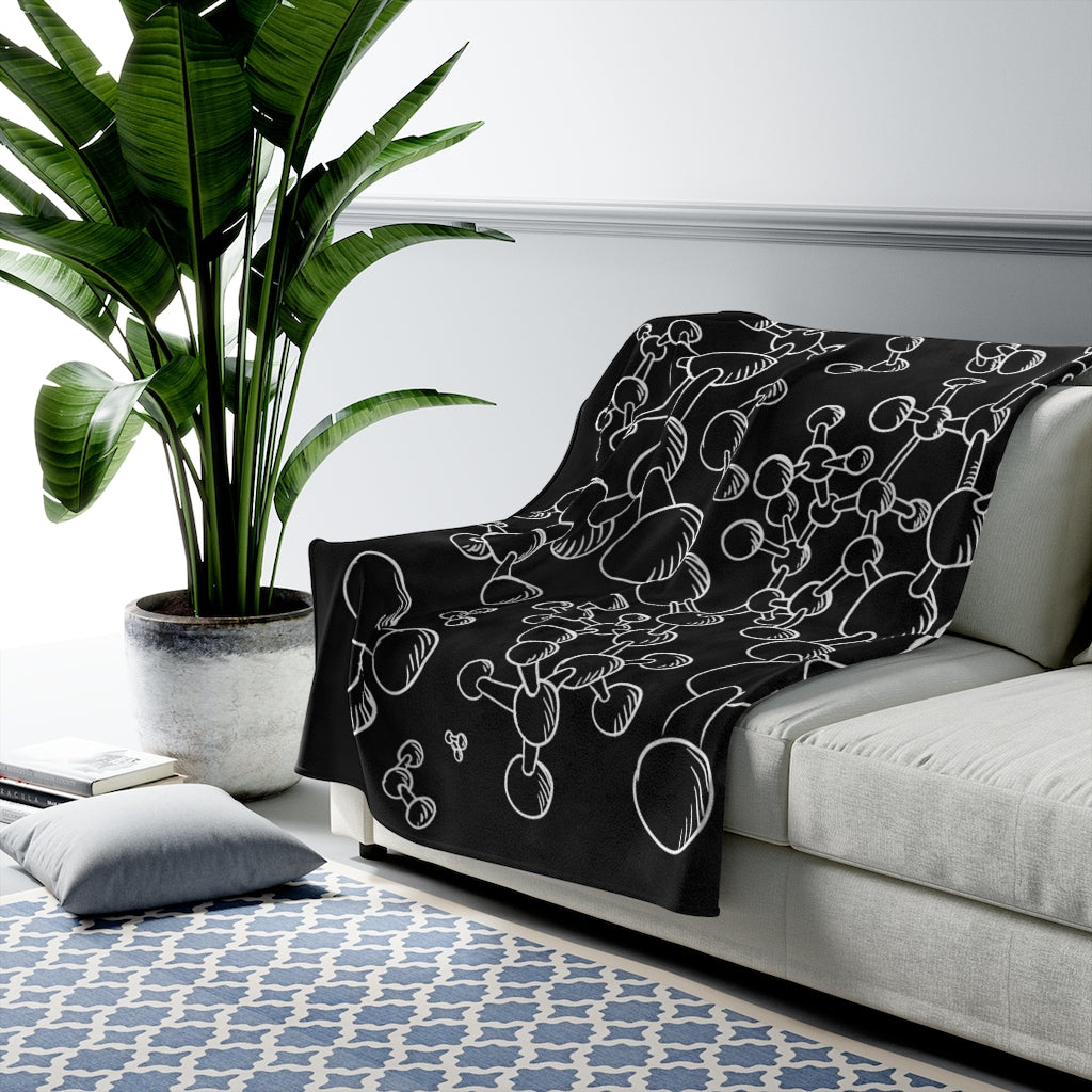 Molecules are all around us and inside us now you get them also as a design on your belongings! Create a cozy and warm atmosphere at home with this plush velveteen blanket. It is soft to touch and perfect for any home. Customize with an all over print to add your personal touch or create a gift for your friends and family