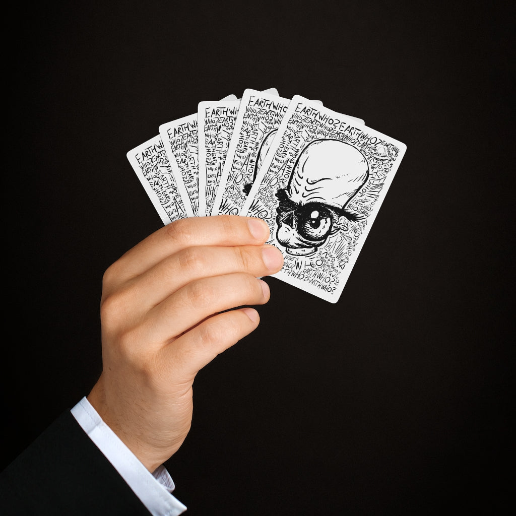 This guy is not sure about what we earth people want from him, better just let him go before he will zap us all to oblivion. Featuring a smooth card stock that’s perfect for dealing & shuffling. Card Dimensions: 2.5" x 3.5"; Includes 52x playing cards with 2x Joker cards.