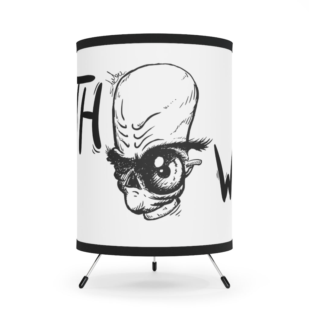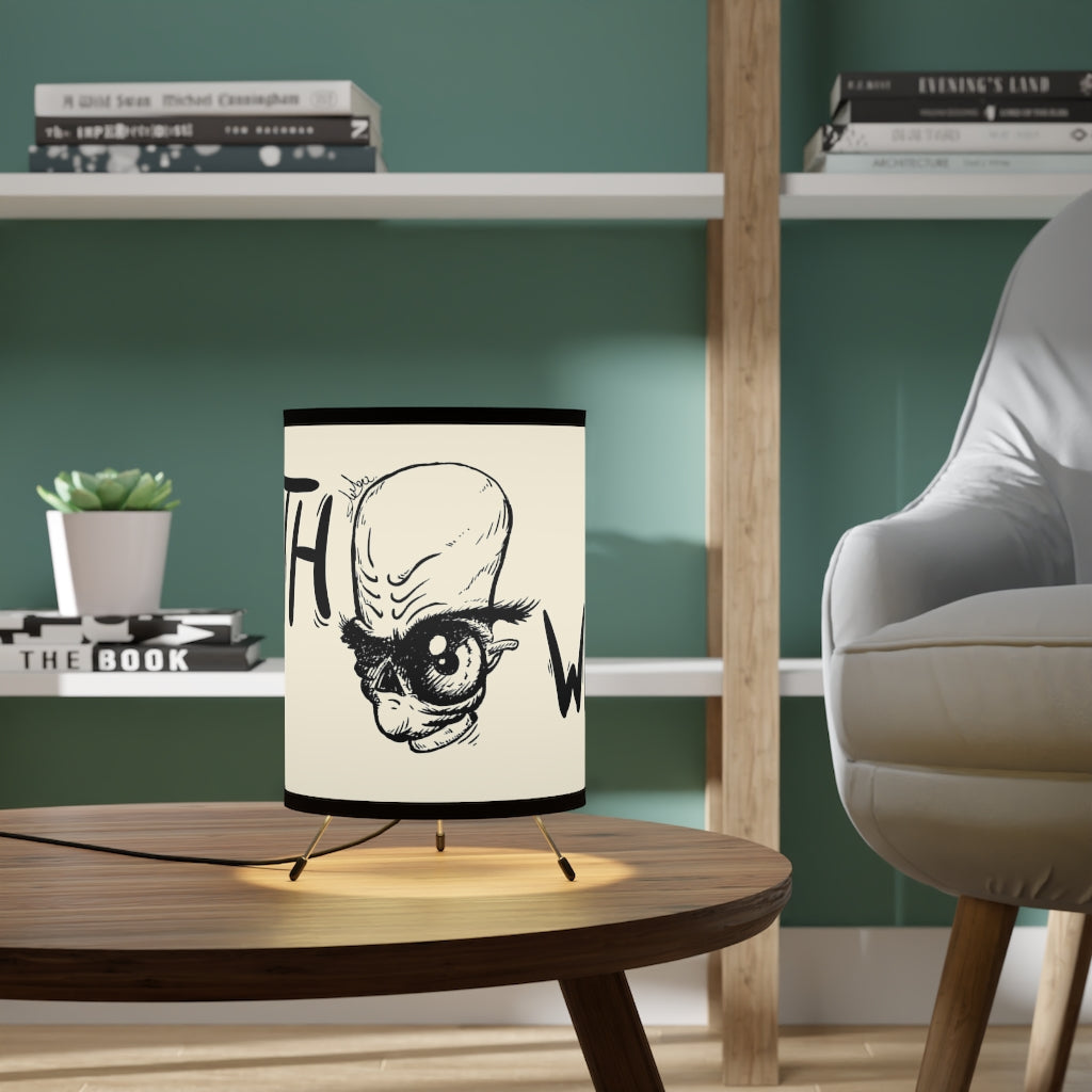 This guy is not sure about what we earth people want from him, better just let him go before he will zap us all to oblivion. A tripod lamp with custom-printed lamp shades. Featuring a galvanized steel tripod base, this lamp delivers both high-end durability and a unique decorative touch. Add a unique touch to your surroundings.